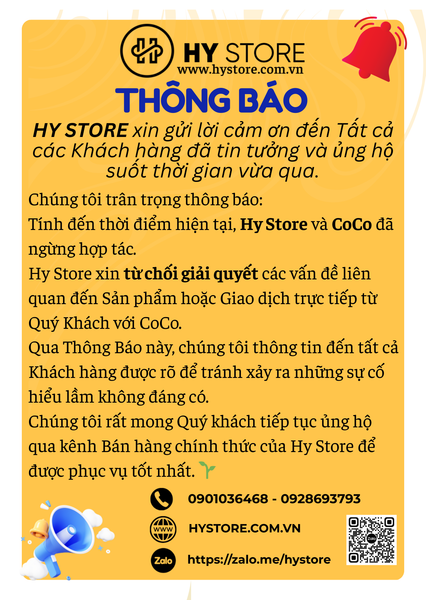 Hy Store xin từ chối giải quyết các vấn đề liên quan đến Sản phẩm hoặc Giao dịch trực tiếp từ Quý Khách với CoCo.