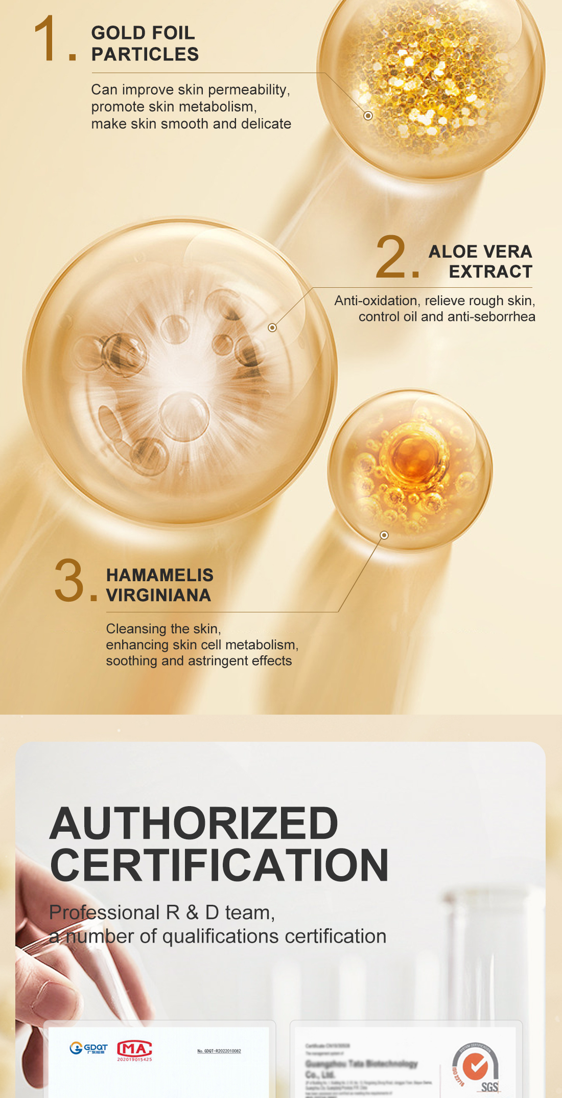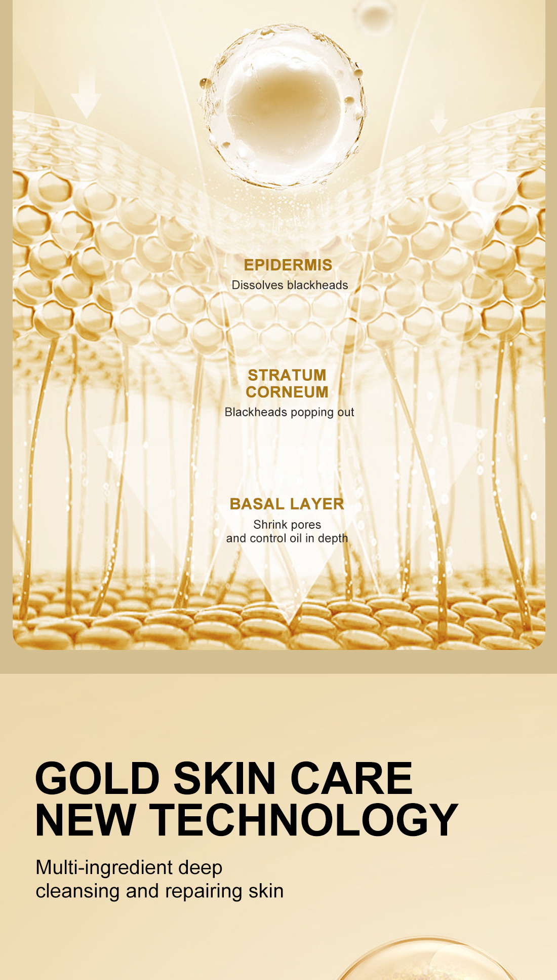 Chứa các thành phần vàng, với các thành phần dưỡng da khác nhau, kết cấu dạng kem mềm và mỏng, giúp loại bỏ các mụn đầu đen và bụi bẩn ra khỏi lỗ chân lông, làm sạch kerati và các mỹ phẩm còn sót lại, đồng thời cải thiện làn da thô ráp, vệ sinh sạch cho làn da.
