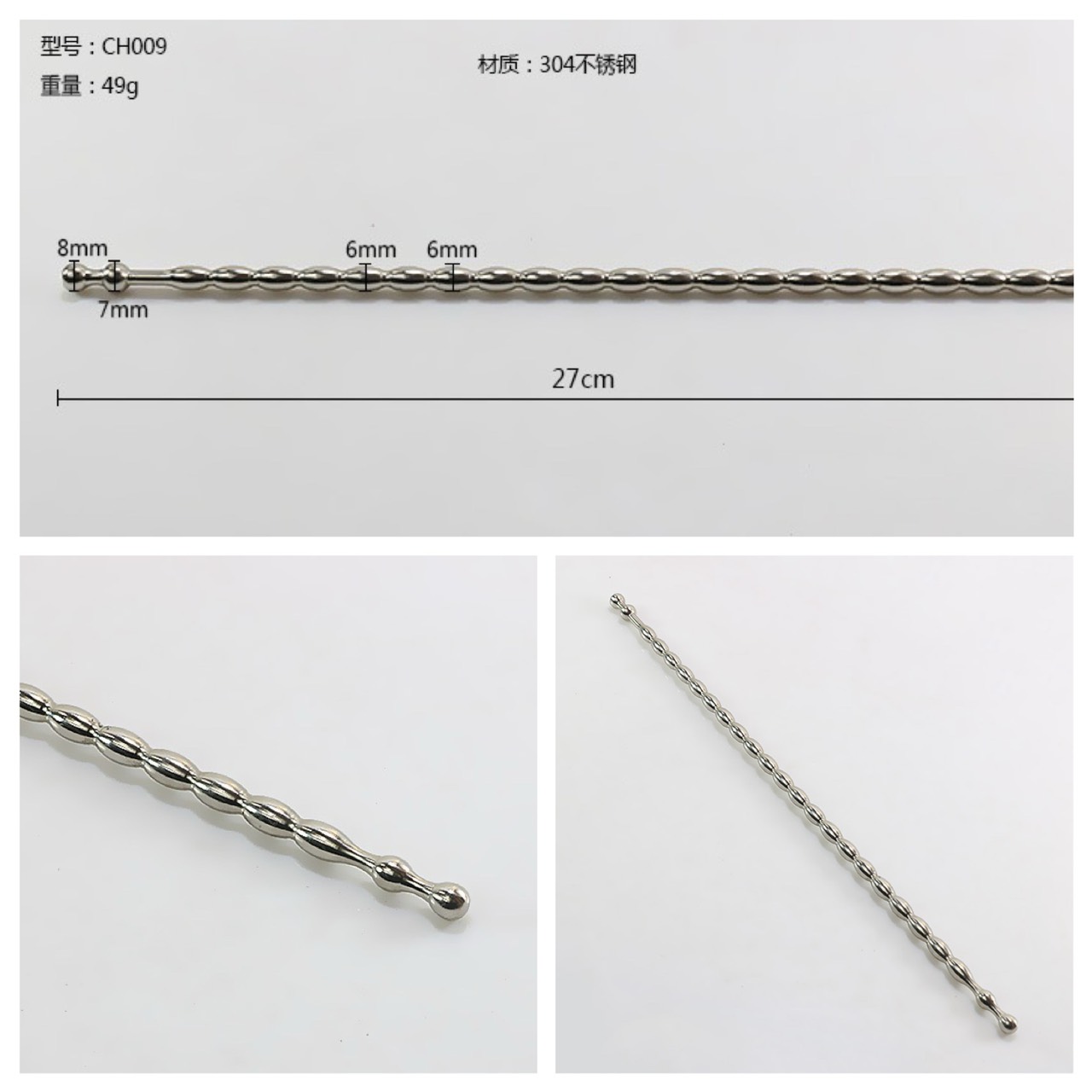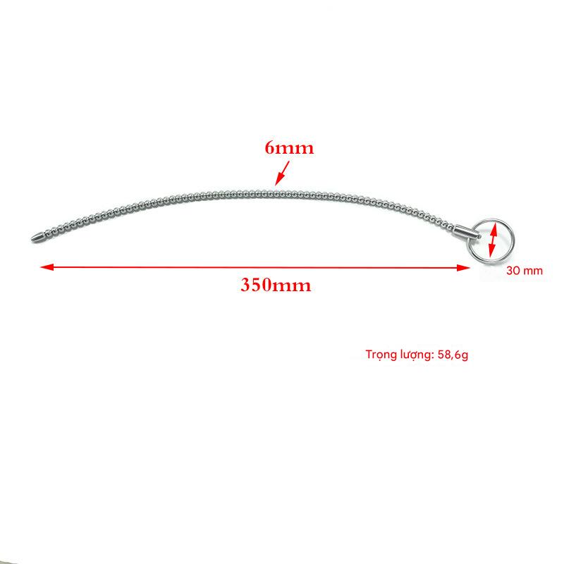 Que bi niệu đạo được thiết kế dạng thanh inox y tế trơn nhẵn với nhiều hạt bi nối liền, tạo sự kích thích liên tục khi đưa vào niệu đạo. Sản phẩm có vòng tròn cố định giúp kiểm soát độ sâu, an toàn khi sử dụng.